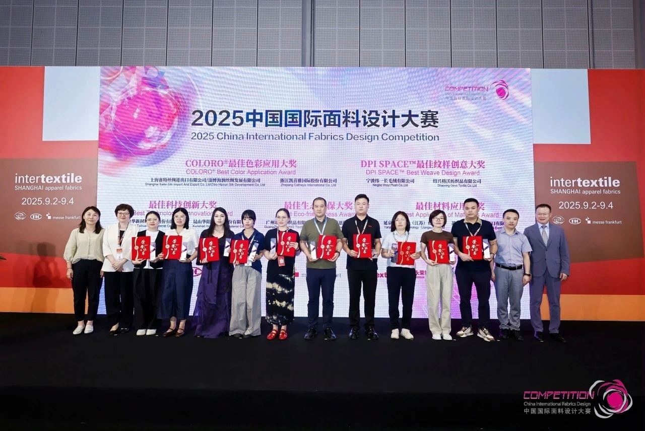 9月3日,2025中國國際面料設計大賽頒獎典禮在上海舉行,臺華自主研發(fā)的“禪翼之殼”產品在本次大賽中獲得“最佳科技應用大獎”,研究院徐麗亞總監(jiān)代表臺華接受授...